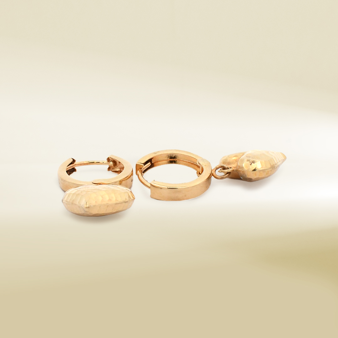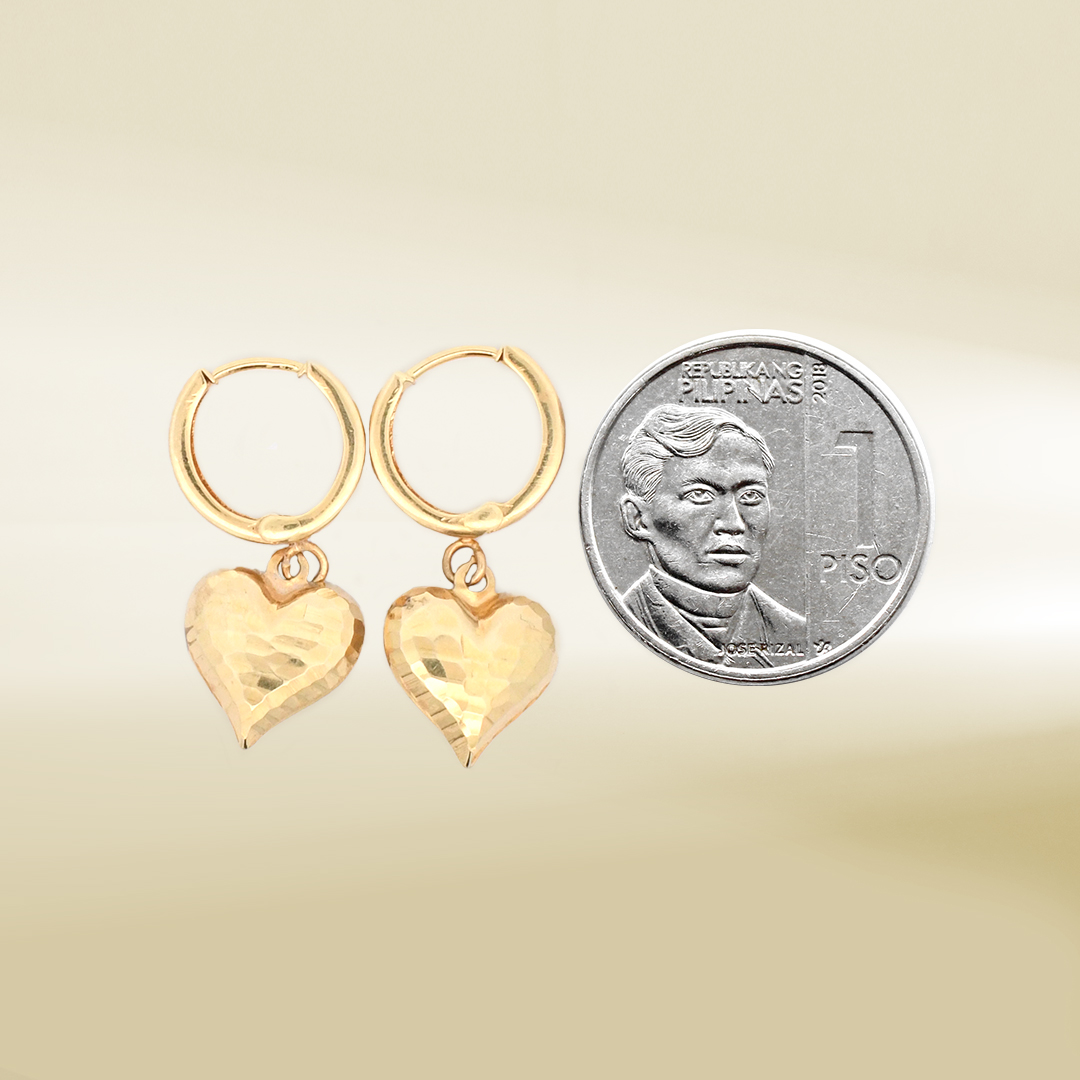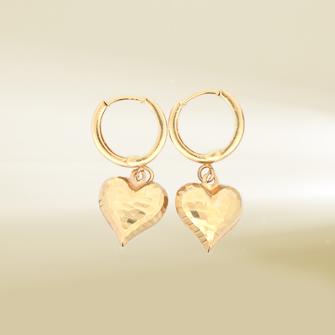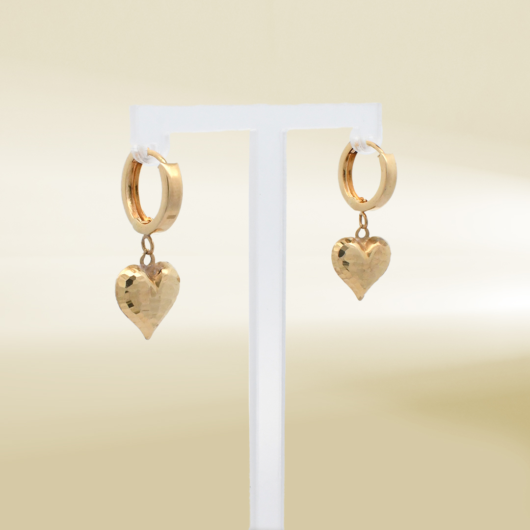 18K Yellow Gold Huggie with Heart Dangle Earrings