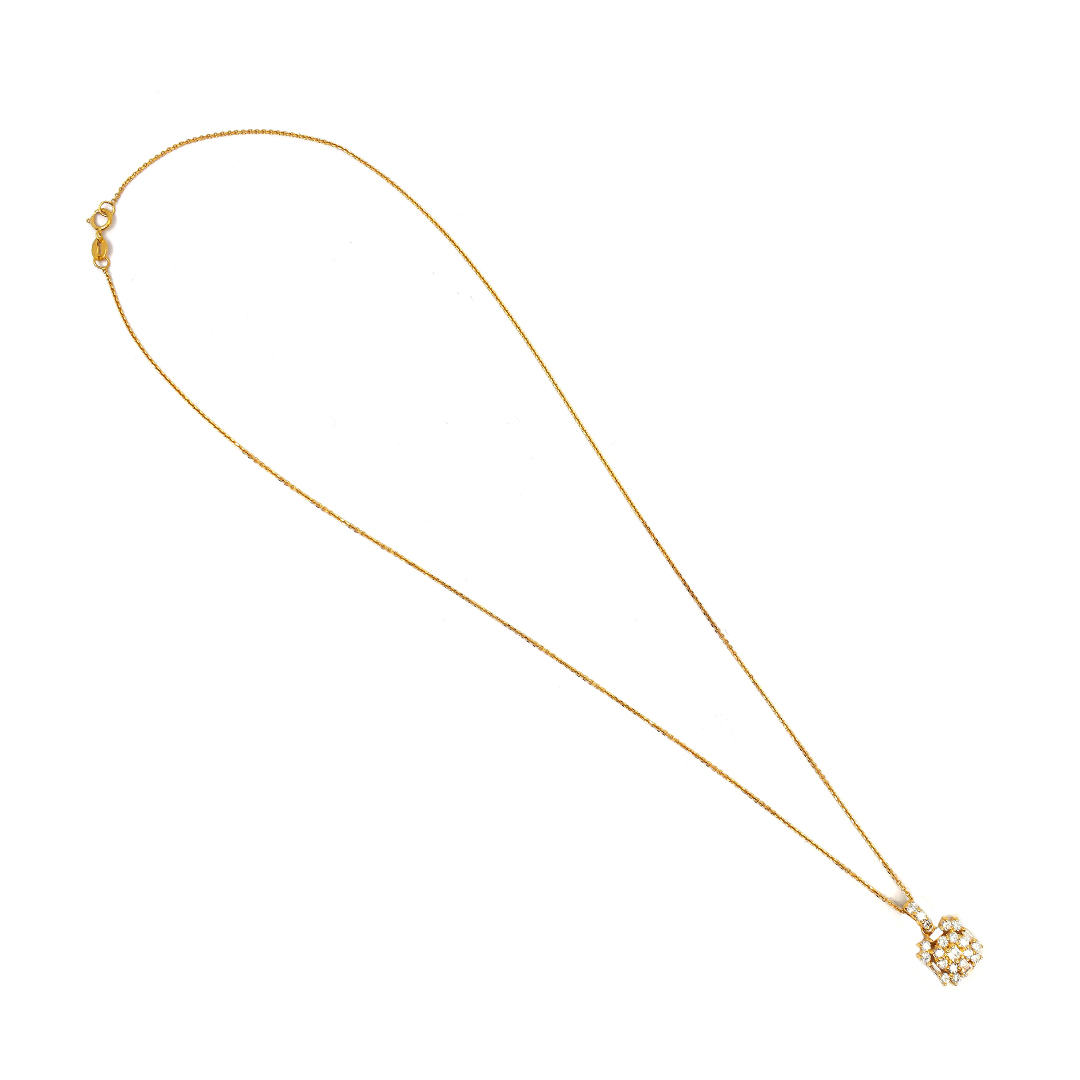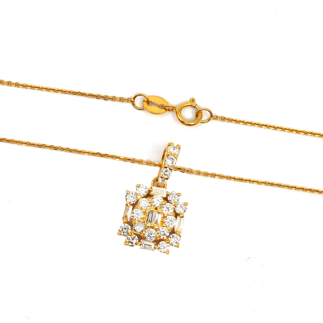 18K Yellow Gold Link Chain Necklace and Pendant with Baguette and Round Cut Diamonds