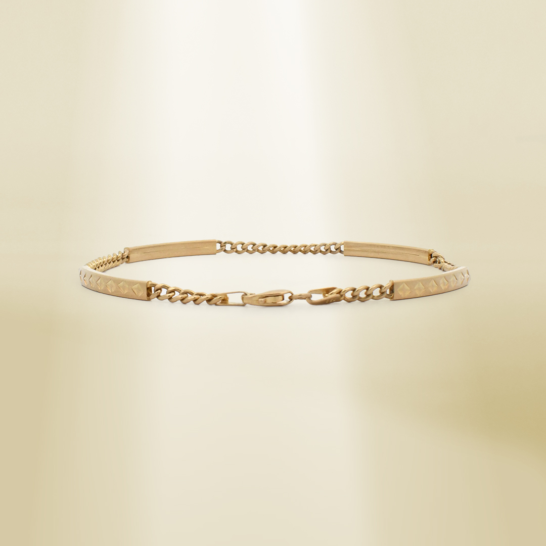 18K Yellow Gold Station Curb Chain Bracelet