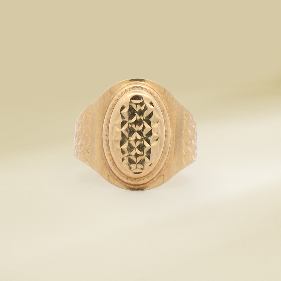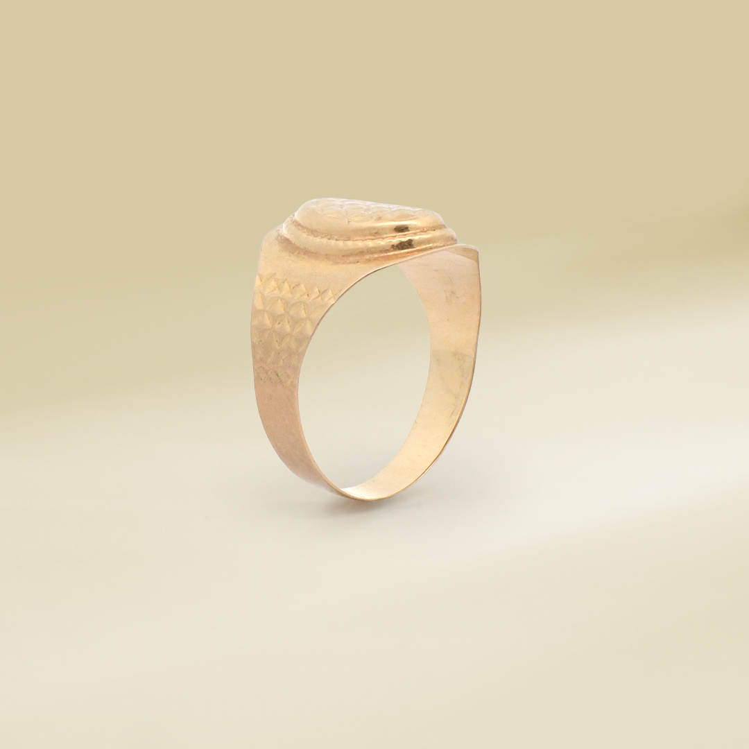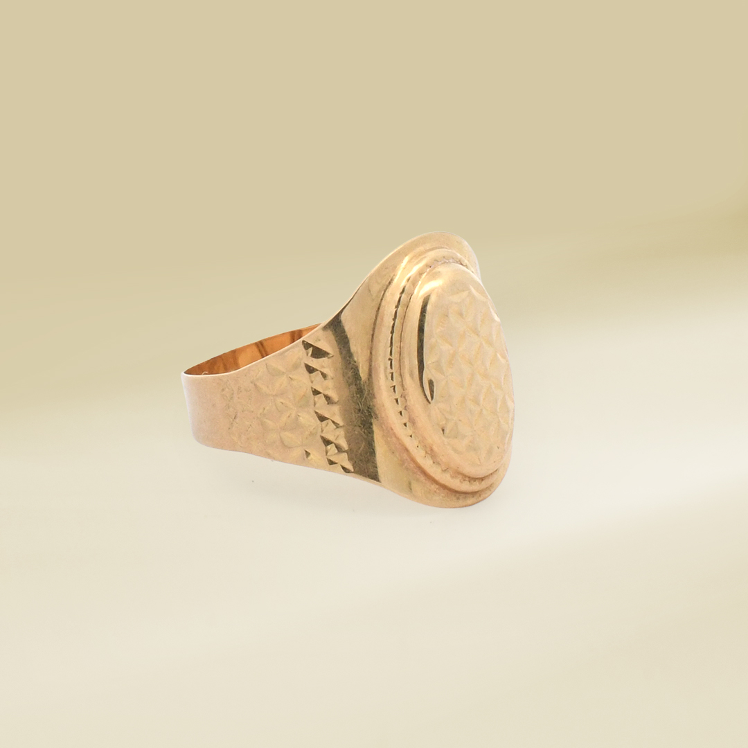 18K Yellow Gold Textured Signet Design Ladies’ Ring