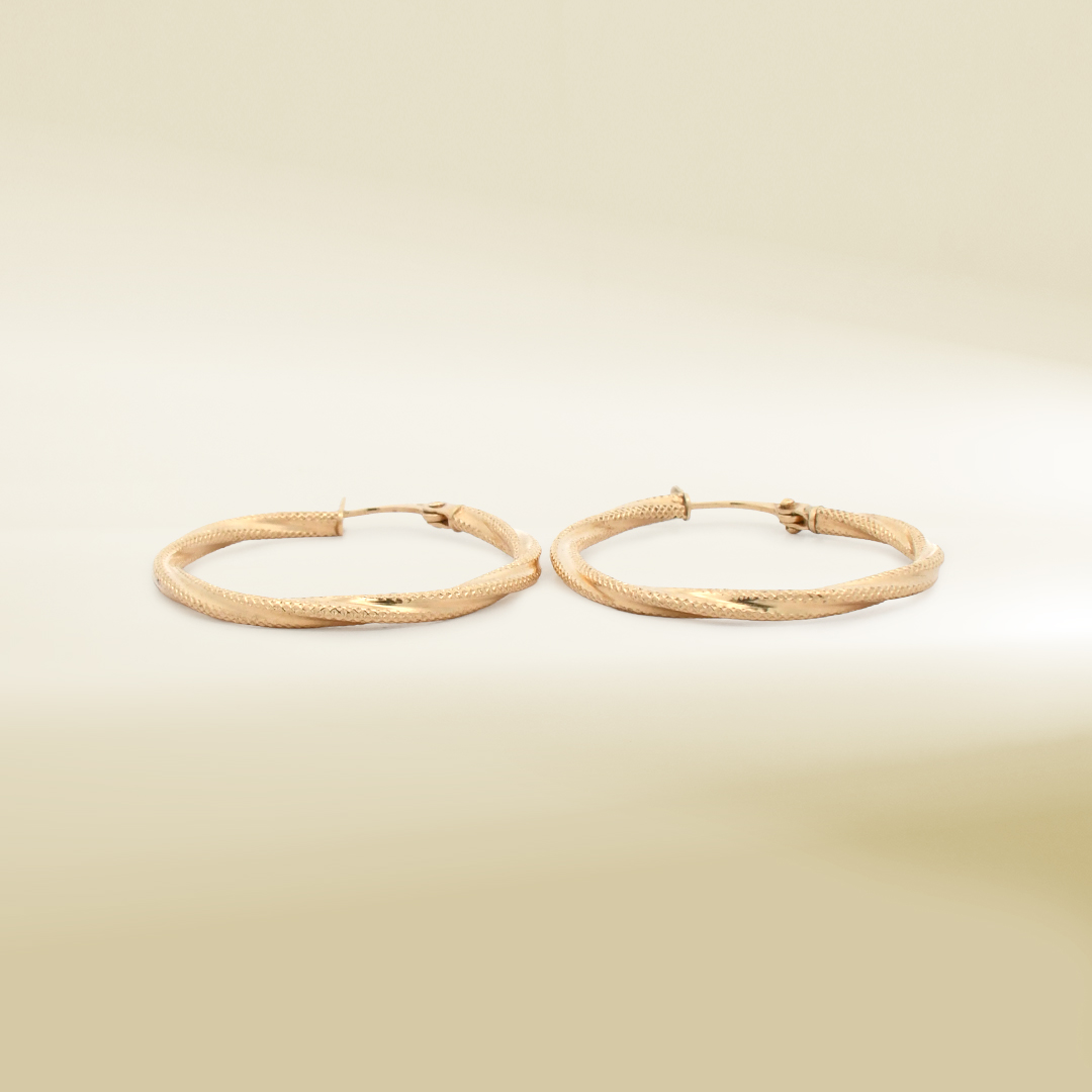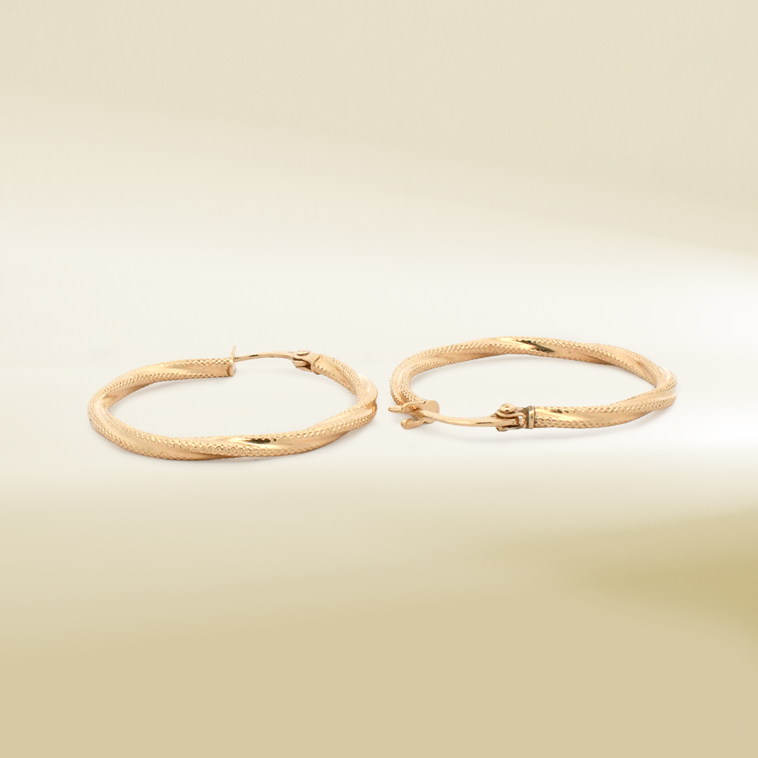 18K Yellow Gold Twisted Hoop Earrings