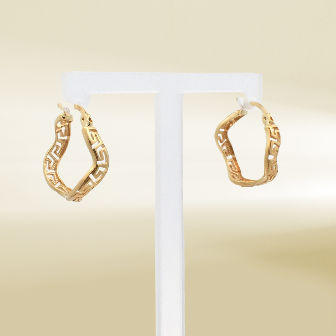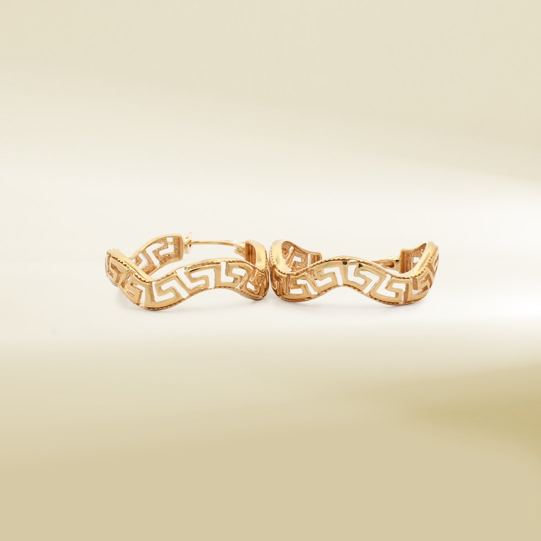 18K Yellow Gold Wavy Greek Inspired Pattern Earrings