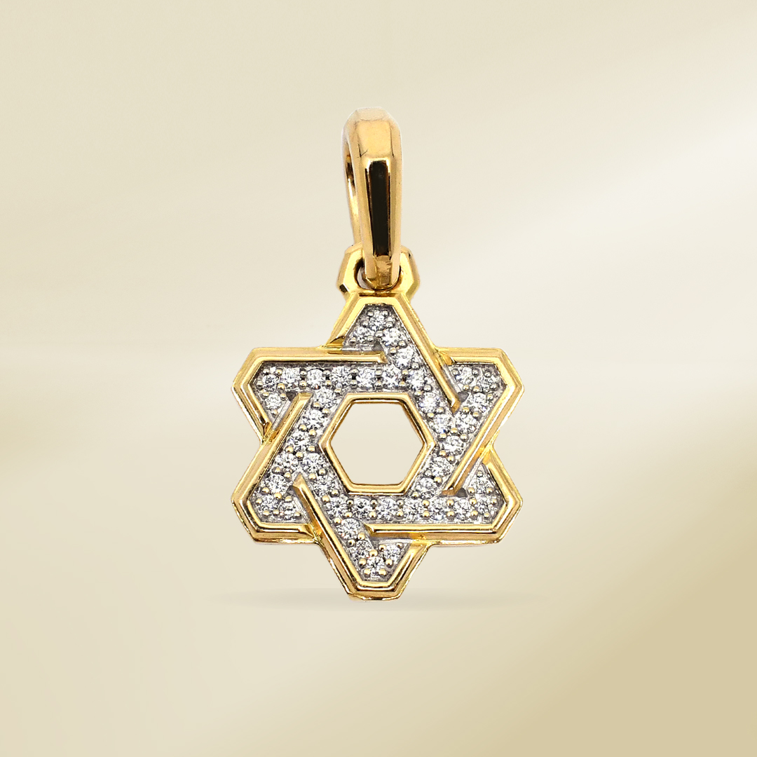 18K Yellow Gold with Round Cut, Cluster Diamonds Pendant