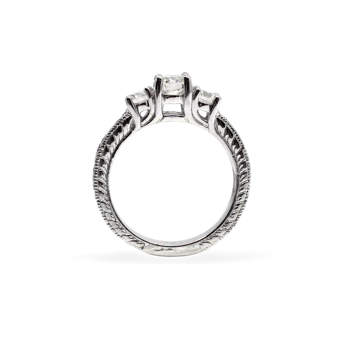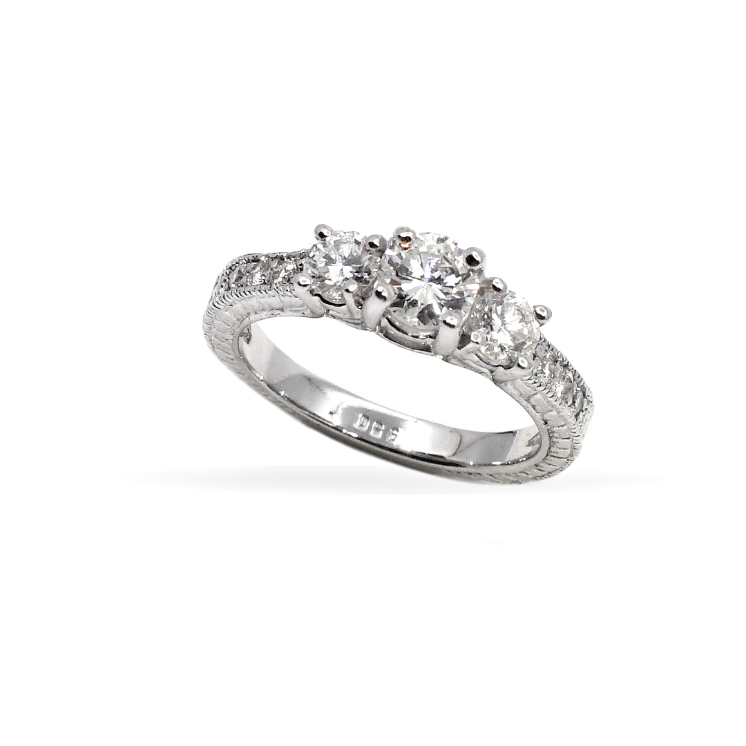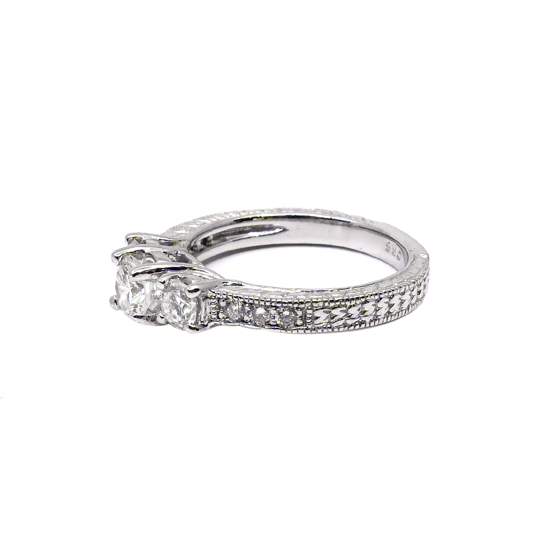 Ladies’ Ring Platinum with Three Stone, Accented Diamonds