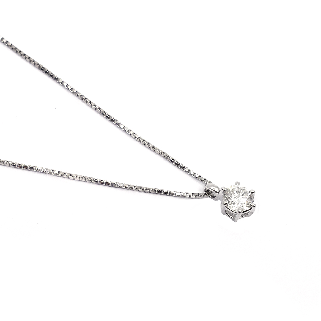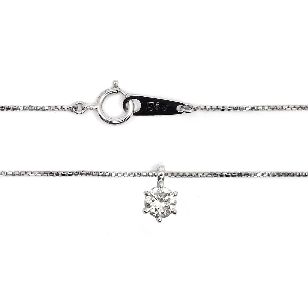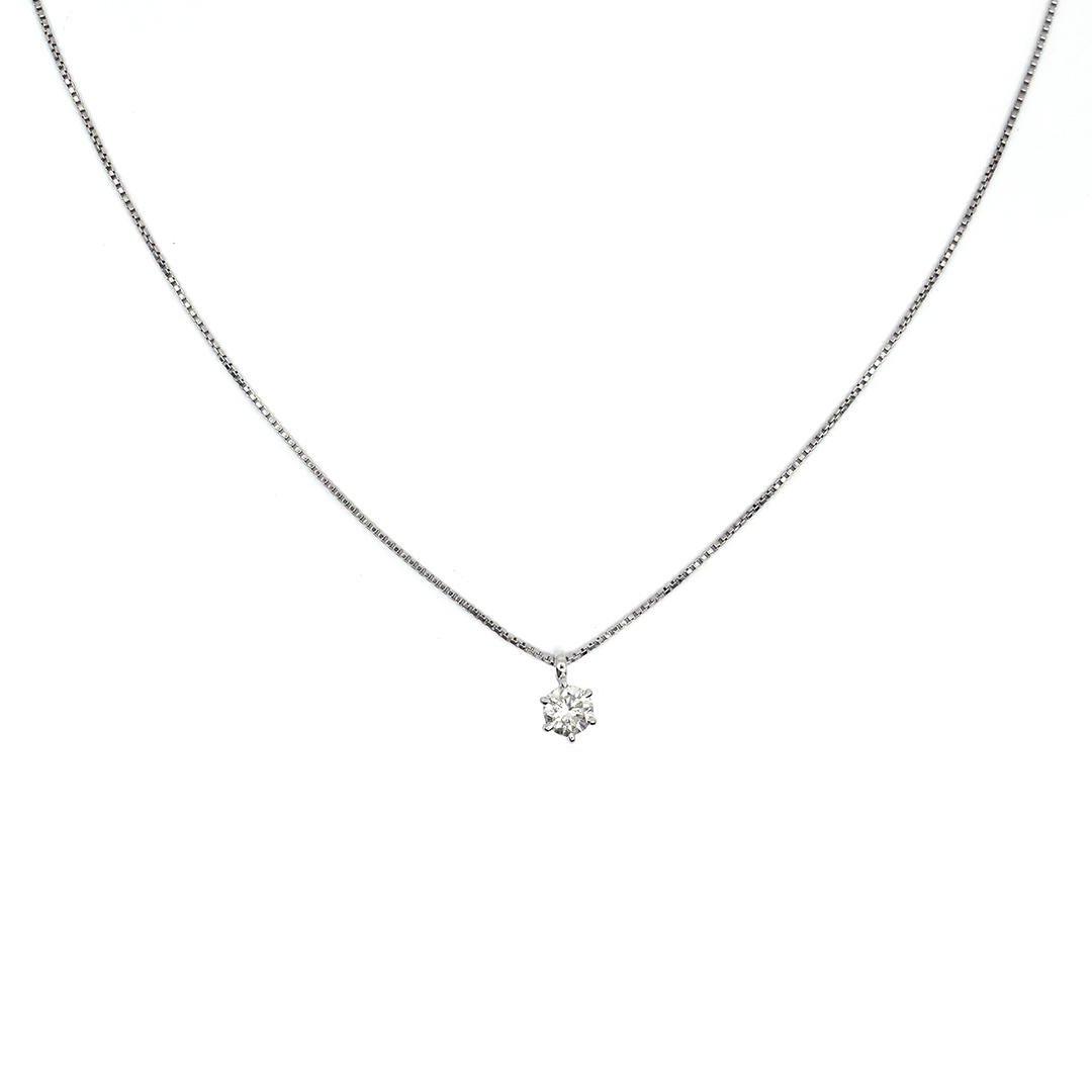 Platinum Box Chain Necklace with Round Cut Diamonds