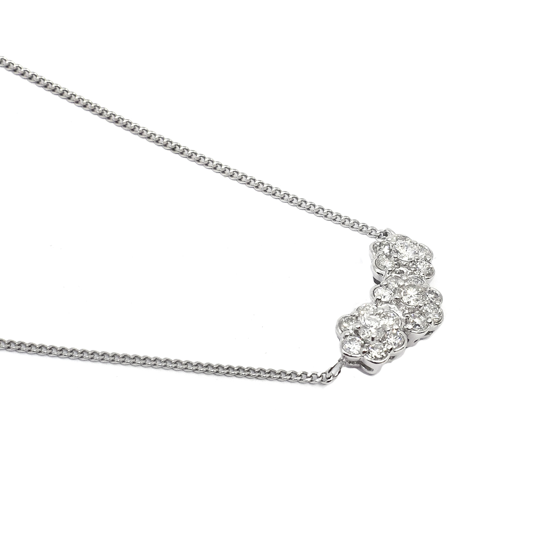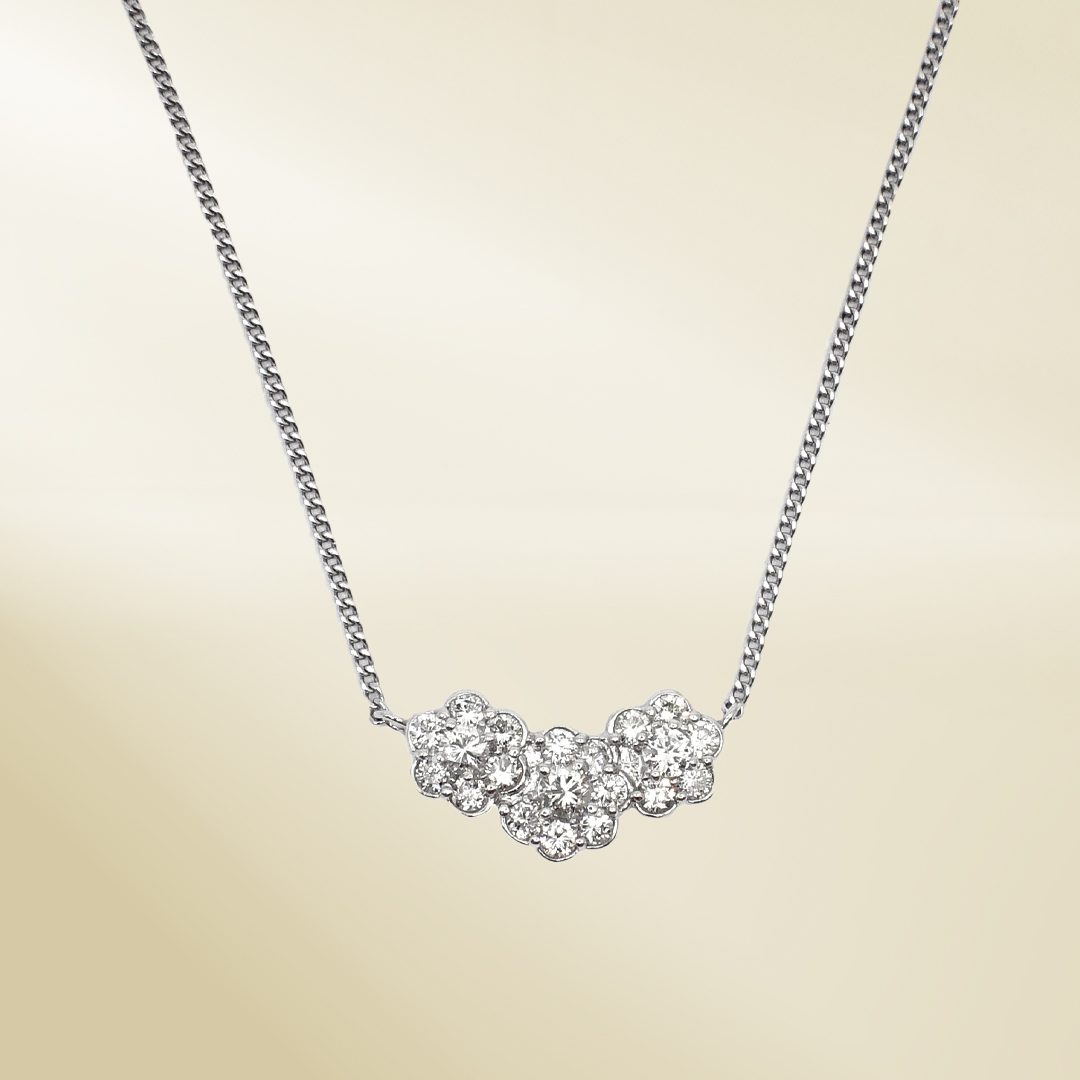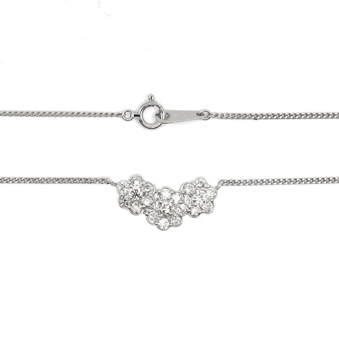 Platinum Link Chain Necklace with Round Cut Diamonds