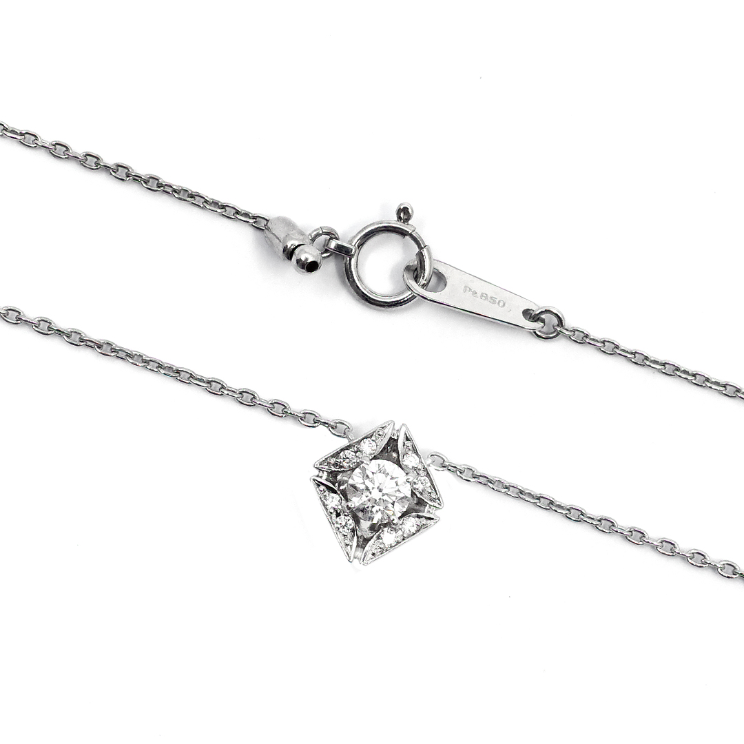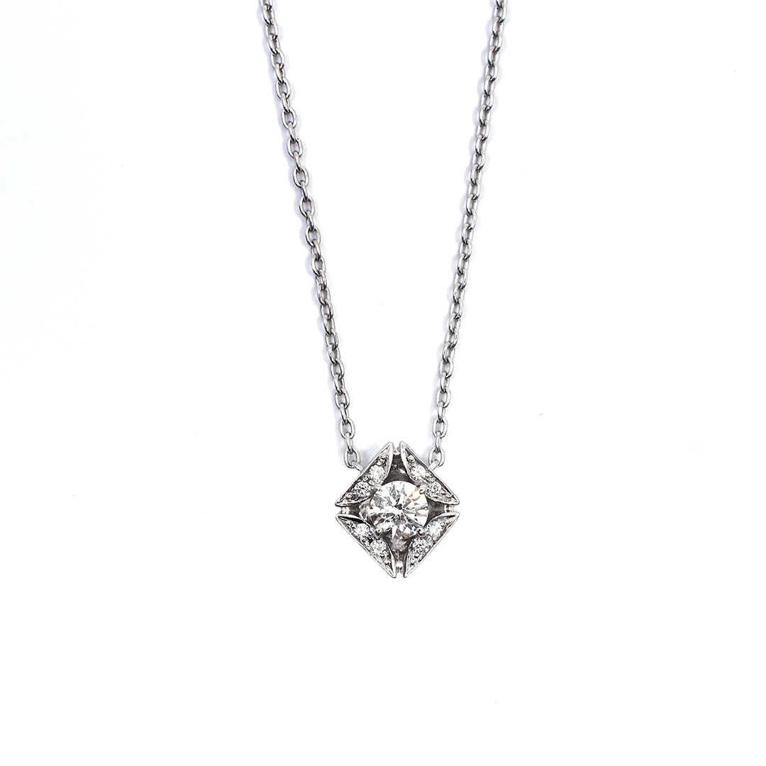 Platinum Link Chain Necklace with Round Cut Diamonds